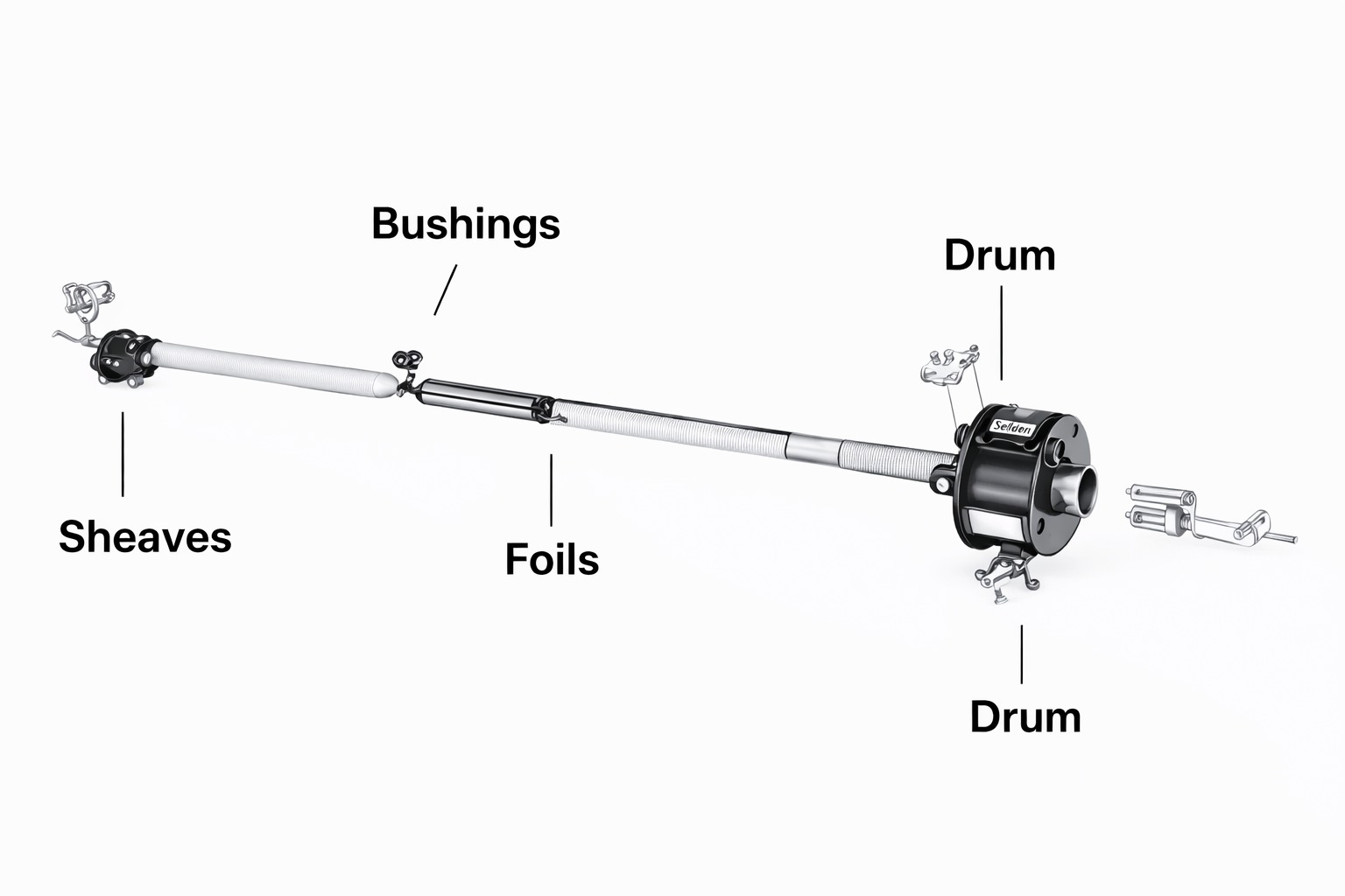 Explore the Alado System, a comprehensive suite of components designed for optimal sailing efficiency. Each part of the system, from the uniquely engineered foils and sheaves to the robust drum and bushing assembly, is crafted to enhance performance and ease of use. Our innovative design ensures reliability and durability even under the most demanding conditions. Learn how each element works in harmony to deliver a superior sailing experience.